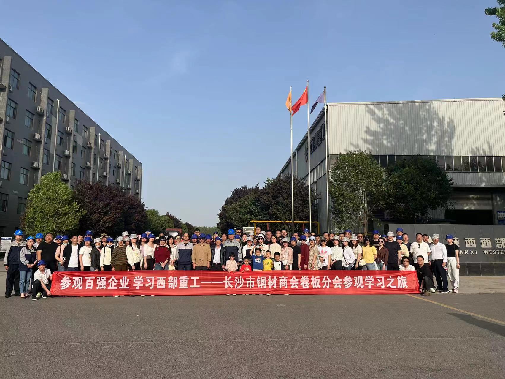 2023年4月15日下午,长沙市钢材商会卷板分会一行118人,在华体会手机平台总经办总经理助理岳东风的带领下莅临陕西西部重工有限公司进行参观。我公司对其来访表示热烈的欢迎,由副总经理丁嘉奕、杨朋涛、财务部部长王红、综合部部长兼供管部部长谭义清、安环部副部长陈广利等进行了热情的接待。